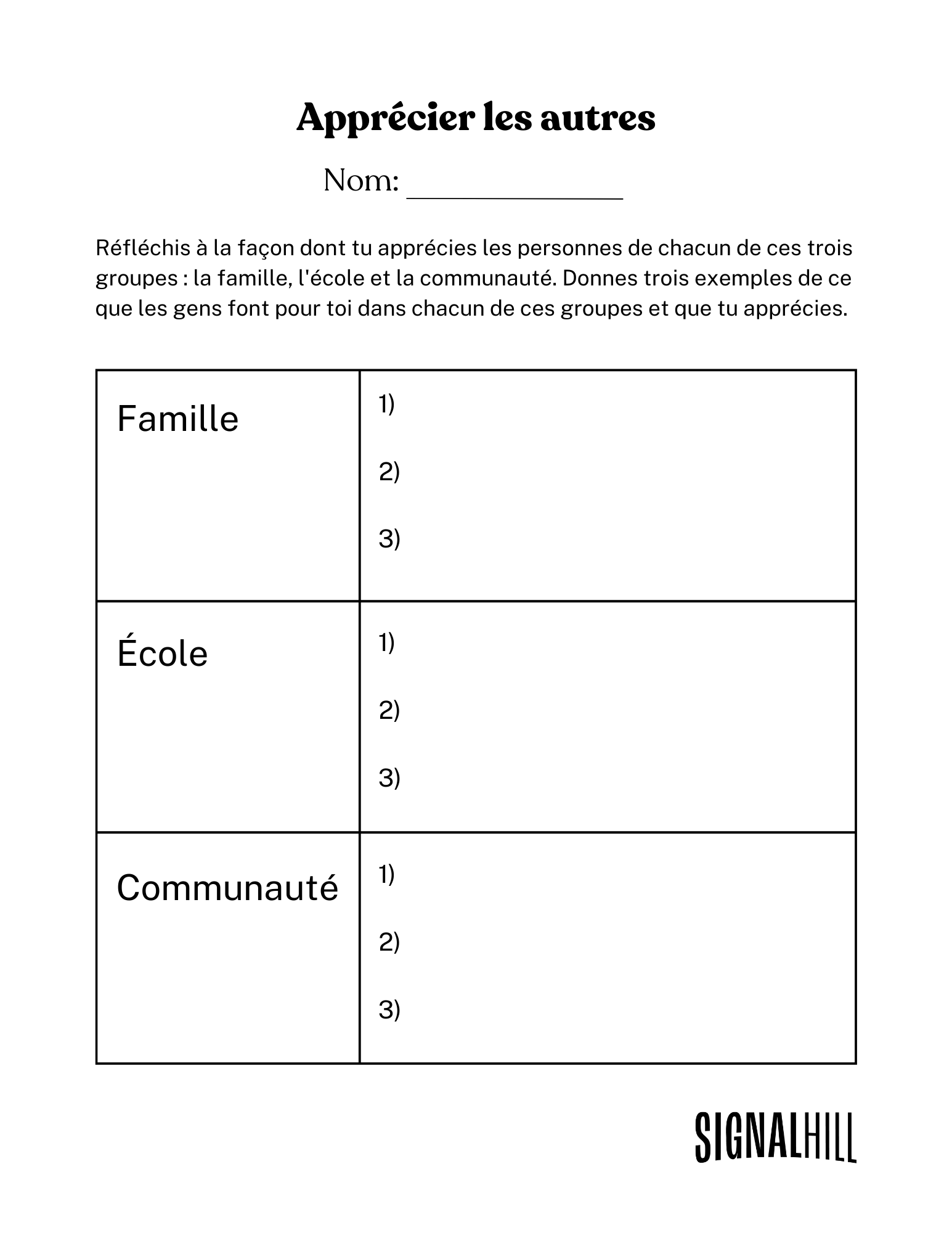 - Démontrer la valeur de la reconnaissance envers les personnes qui les entourent.