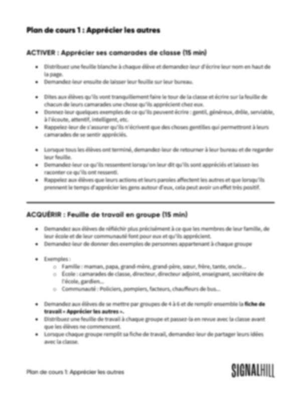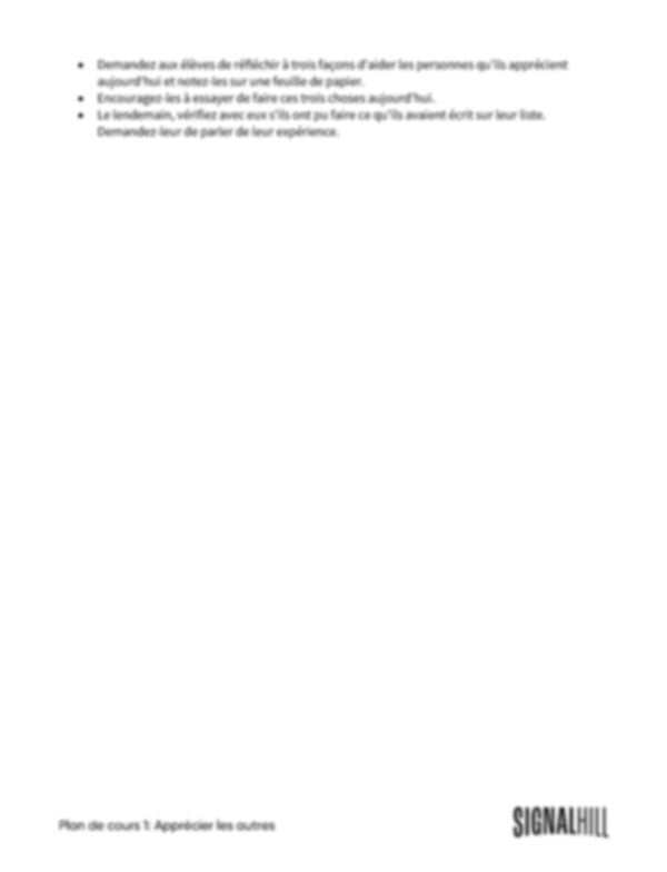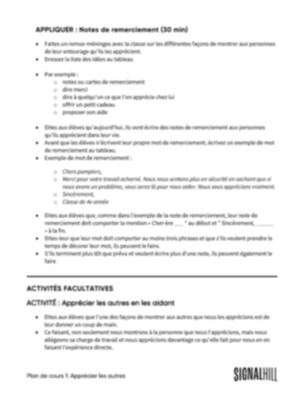 Combien de fois nous arrêtons-nous pour apprécier les personnes qui font partie de notre vie ? Dans cette leçon, les élèves auront l'occasion de montrer leur appréciation des personnes de leur communauté et de reconnaître l'impact positif que les actions des autres ont eu sur eux.