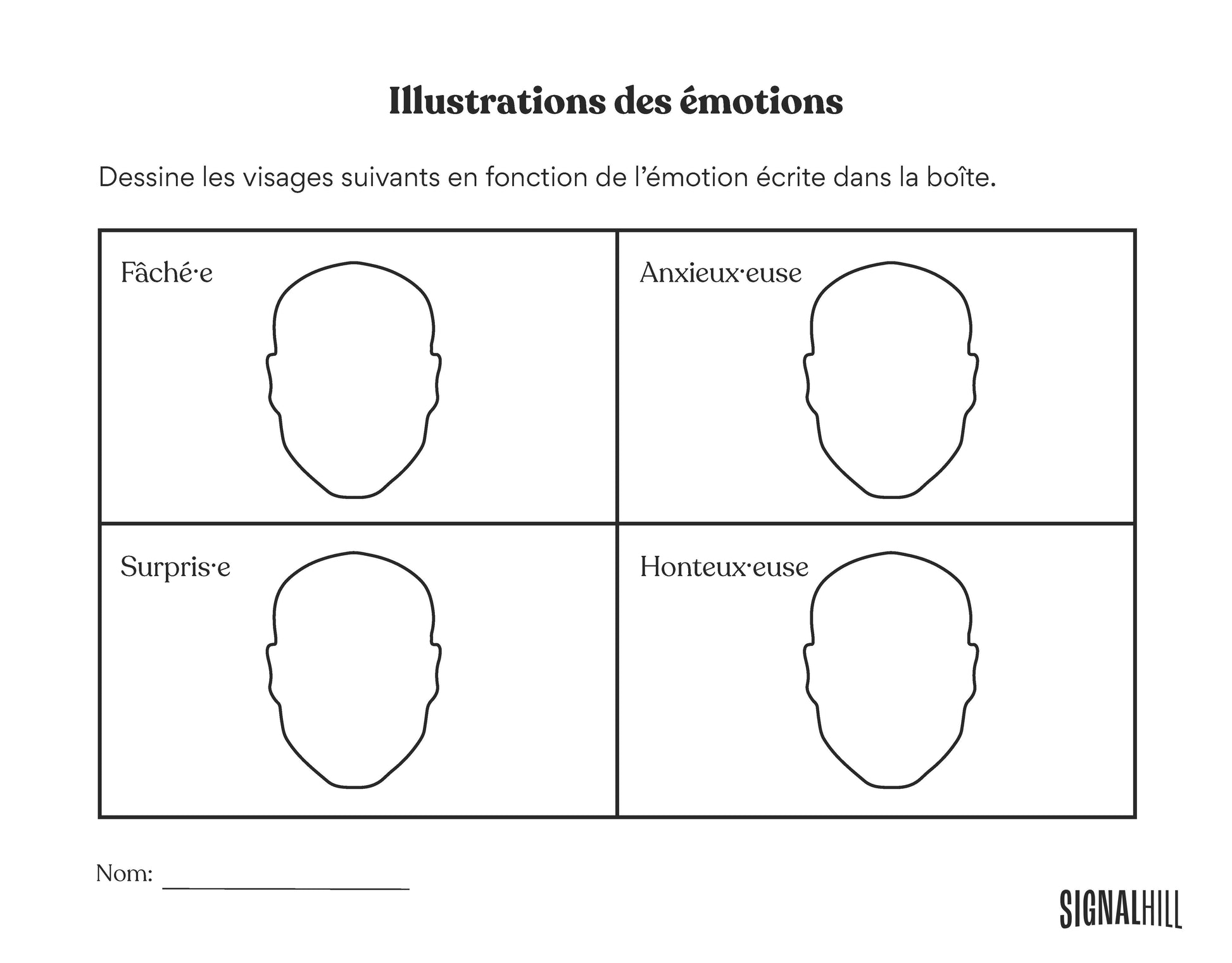 - Démontrer une capacité à décrire et à nommer les sentiments qu'ils ressentent.