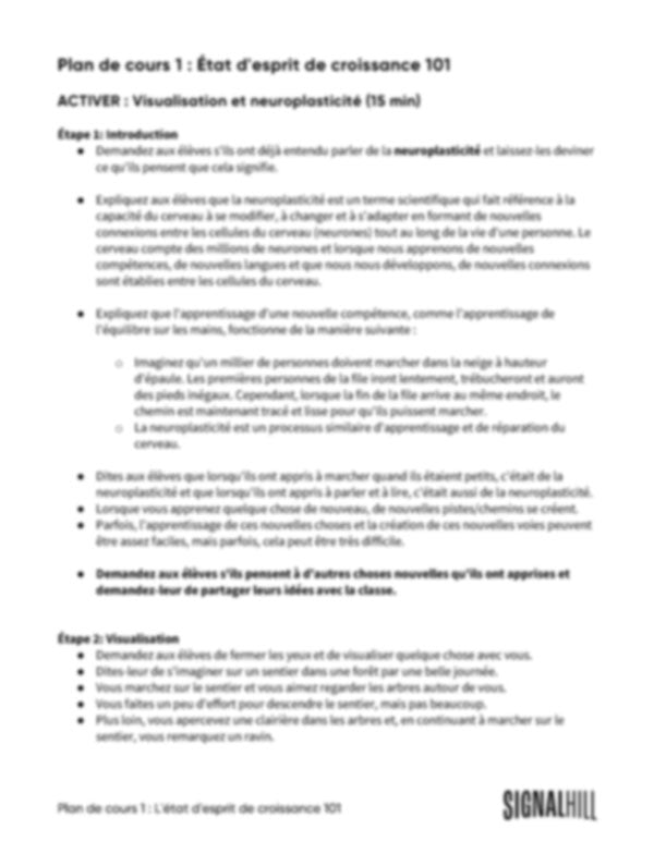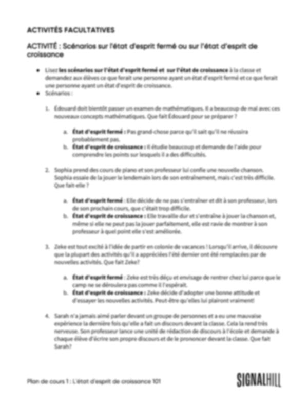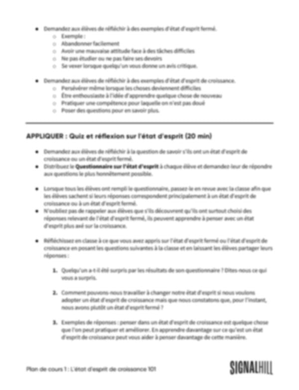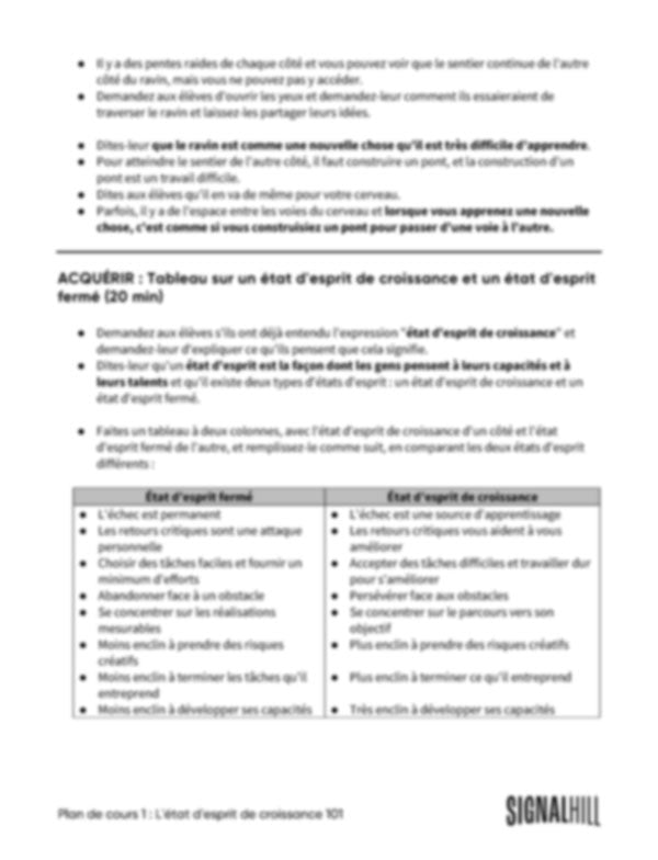 Plan de cours 1: État d'esprit de croissance 101