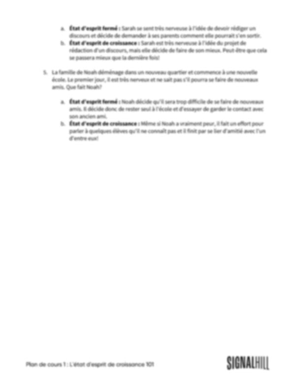 - Identifier des exemples d'un état d'esprit de croissance et d'un étatd'esprit fixe.