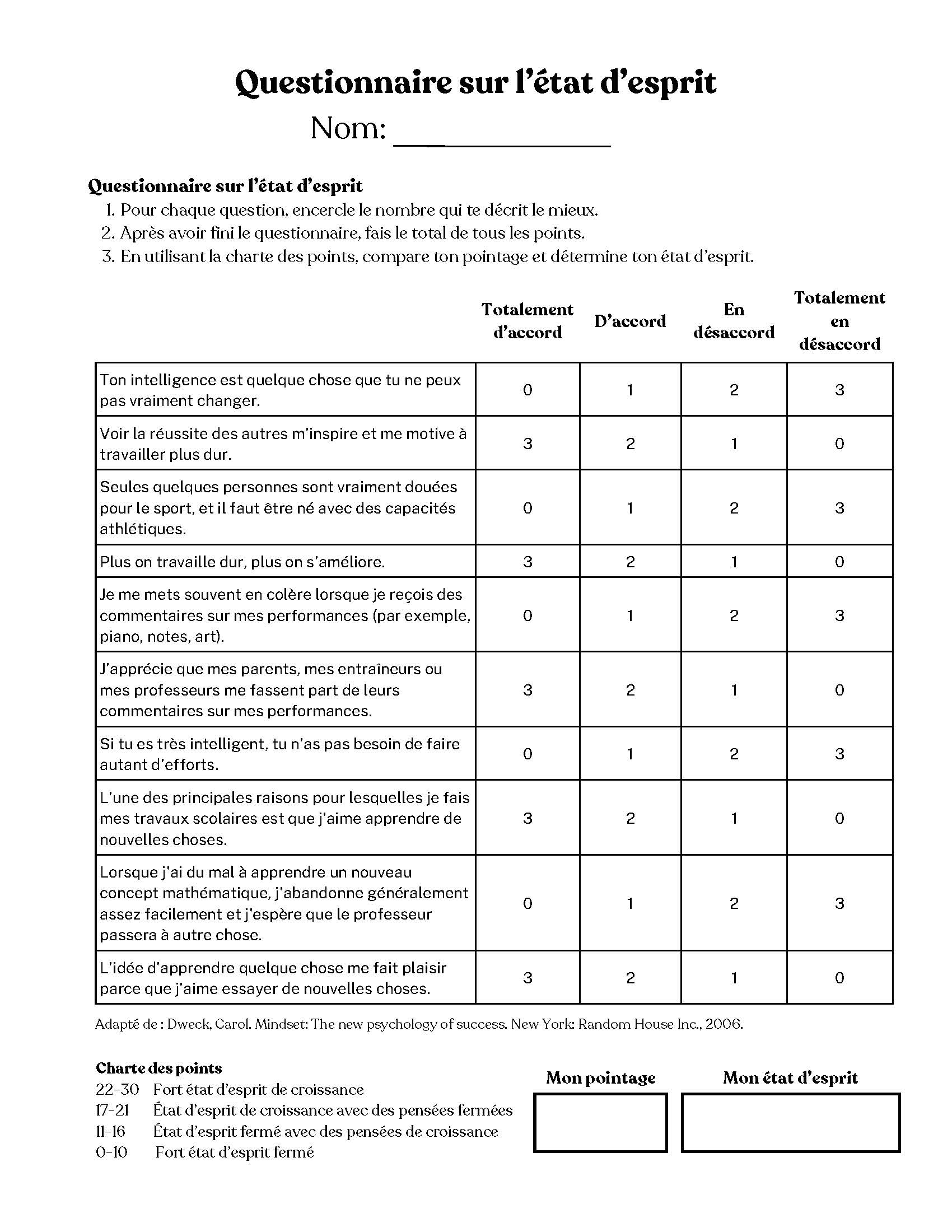 - Questionnaire sur l'état d'esprit (à imprimer)