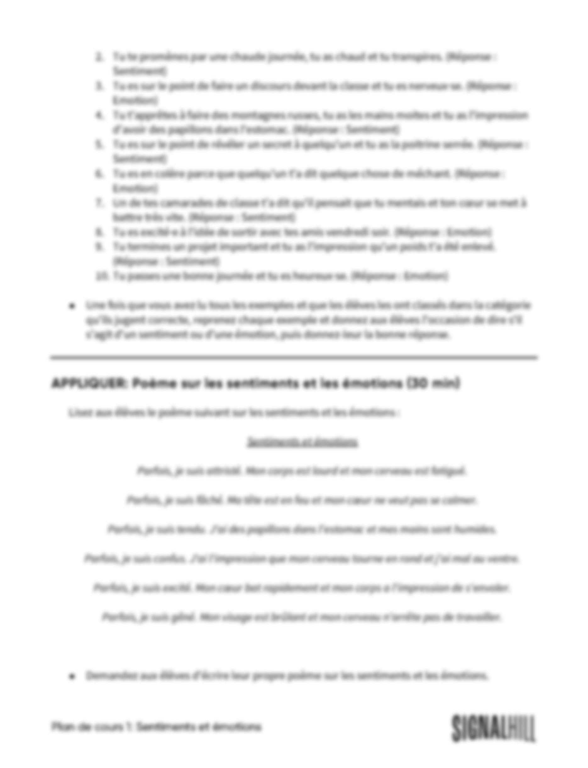 Les mots « sentiments » et « émotions » sont souvent utilisés de manière interchangeable, mais il existe une différence entre les deux. Cette leçon apprend aux élèves à faire la différence entre leurs sentiments et leurs émotions et les aidera à mieux comprendre leurs propres émotions lorsqu'elles se manifestent.