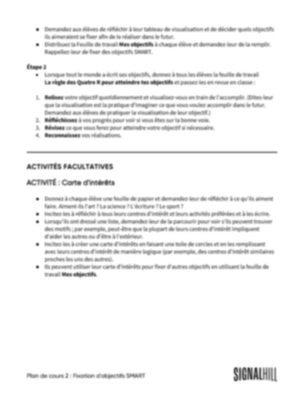 Il est facile de se fixer des objectifs, mais il peut être difficile de les atteindre. Cette leçon montrera aux élèves comment fixer des objectifs SMART et les aidera à les atteindre avec succès.