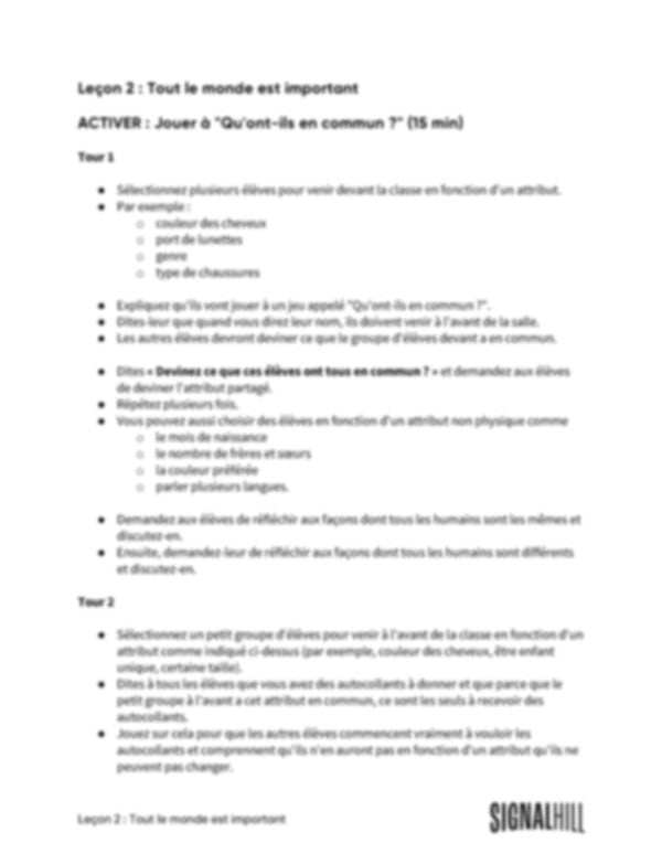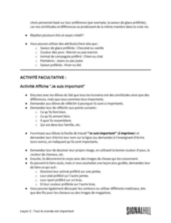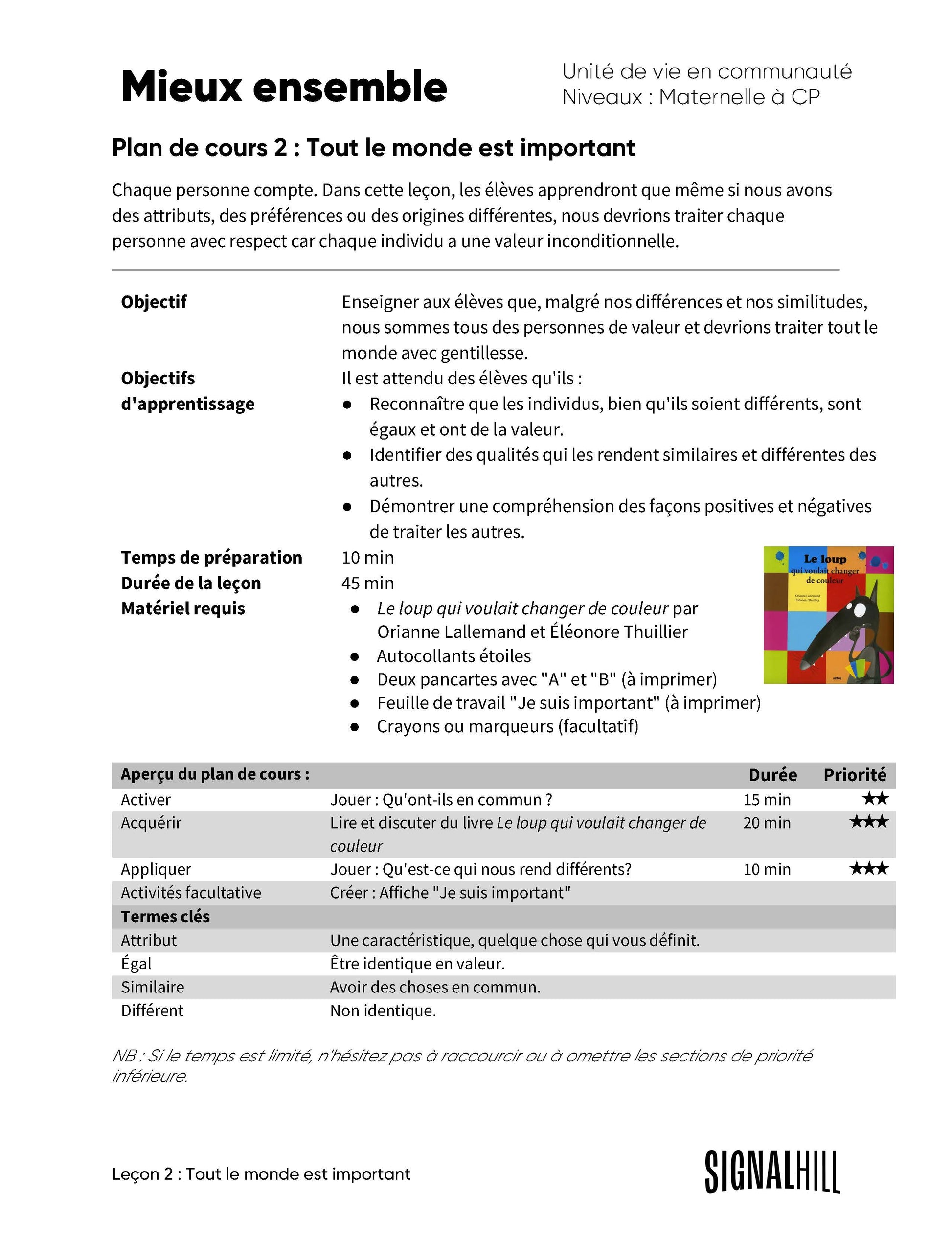 Chaque personne compte. Dans cette leçon, les élèves apprendront que même si nous avons des attributs, des préférences ou des origines différentes, nous devrions traiter chaque personne avec respect car chaque individu a une valeur inconditionnelle.