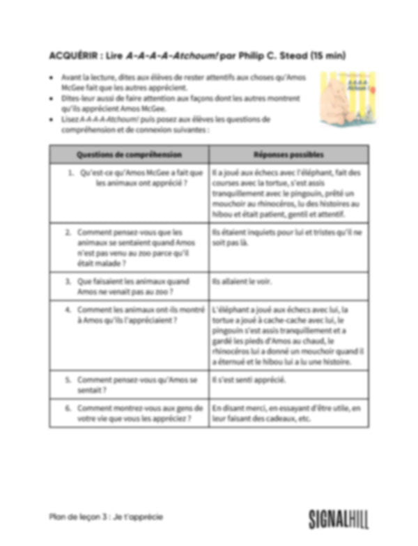 Comment pouvons-nous montrer aux autres que nous les apprécions ? Dans cette leçon, les élèves réfléchiront aux choses utiles et gentilles que d'autres ont faites pour eux et auront l'occasion de montrer leur appréciation.