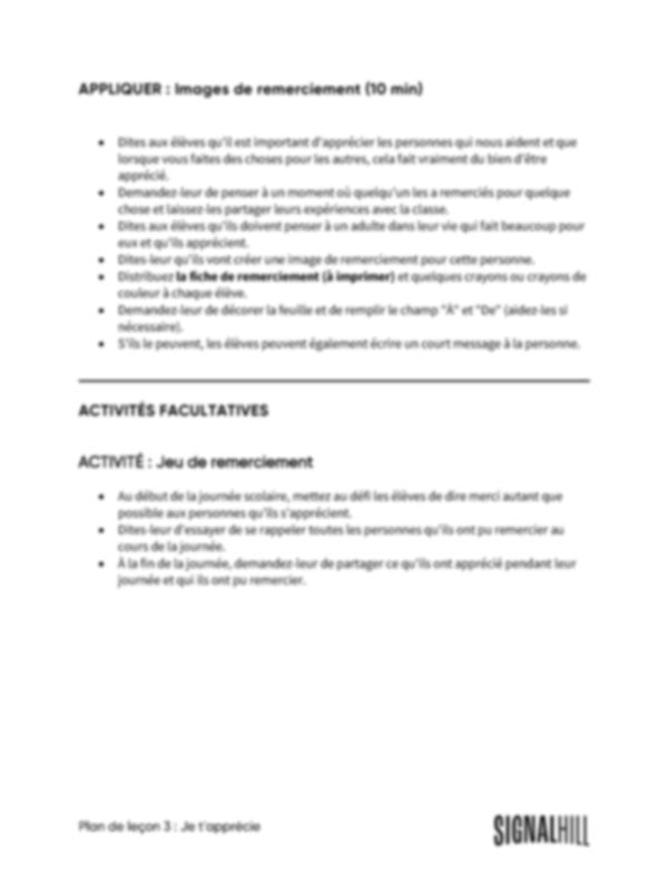 - Identifier des façons de montrer leur appréciation envers lespersonnes qui les entourent.