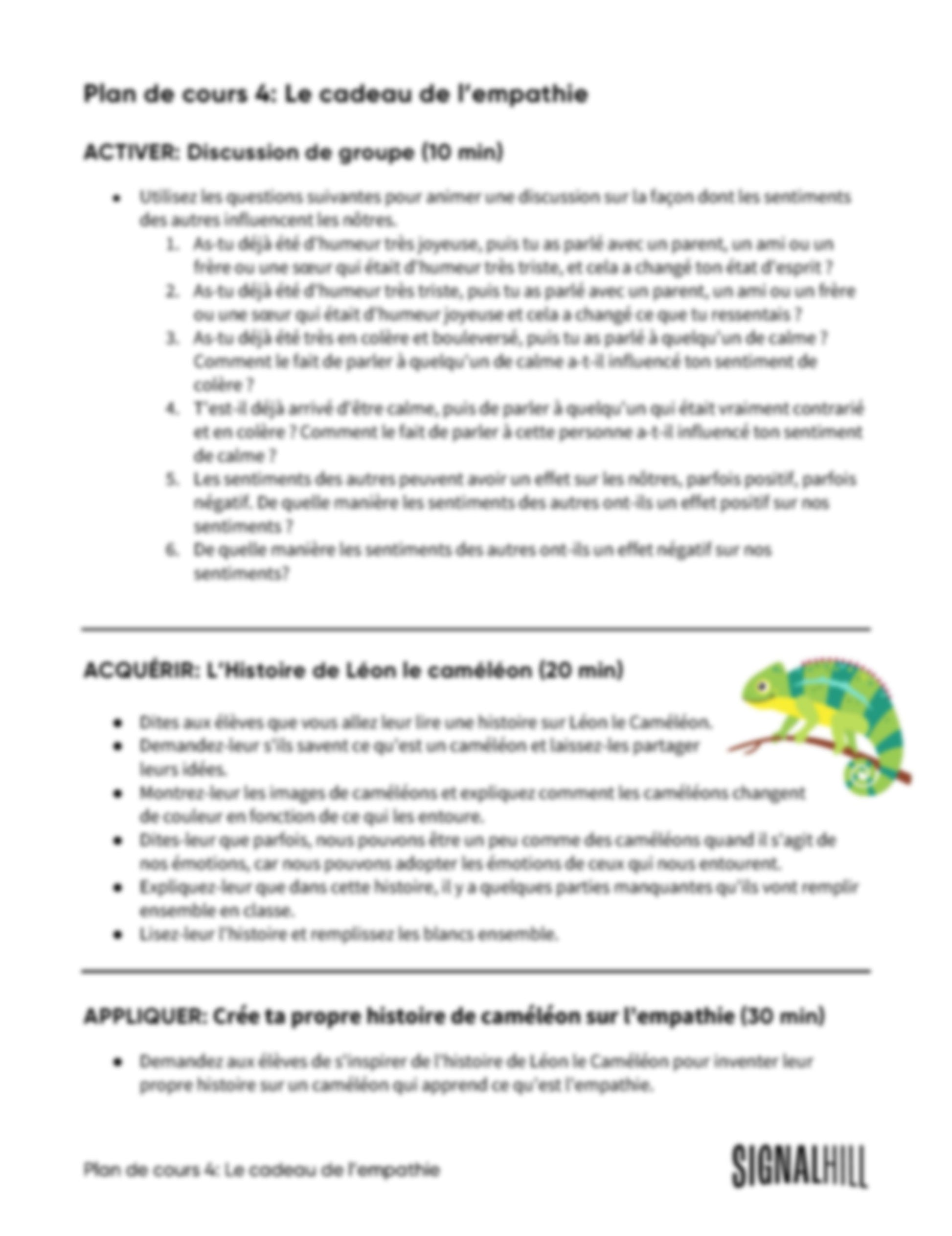 Plan de cours 4: Le cadeau de l’empathie