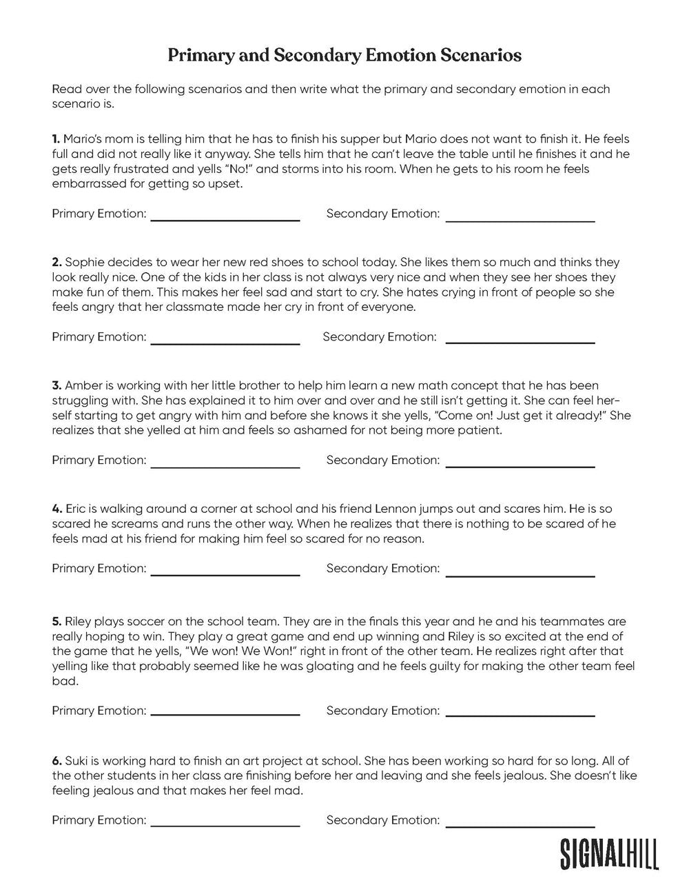 - Answer Key - Primary and Secondary Emotion Scenarios (Printable)