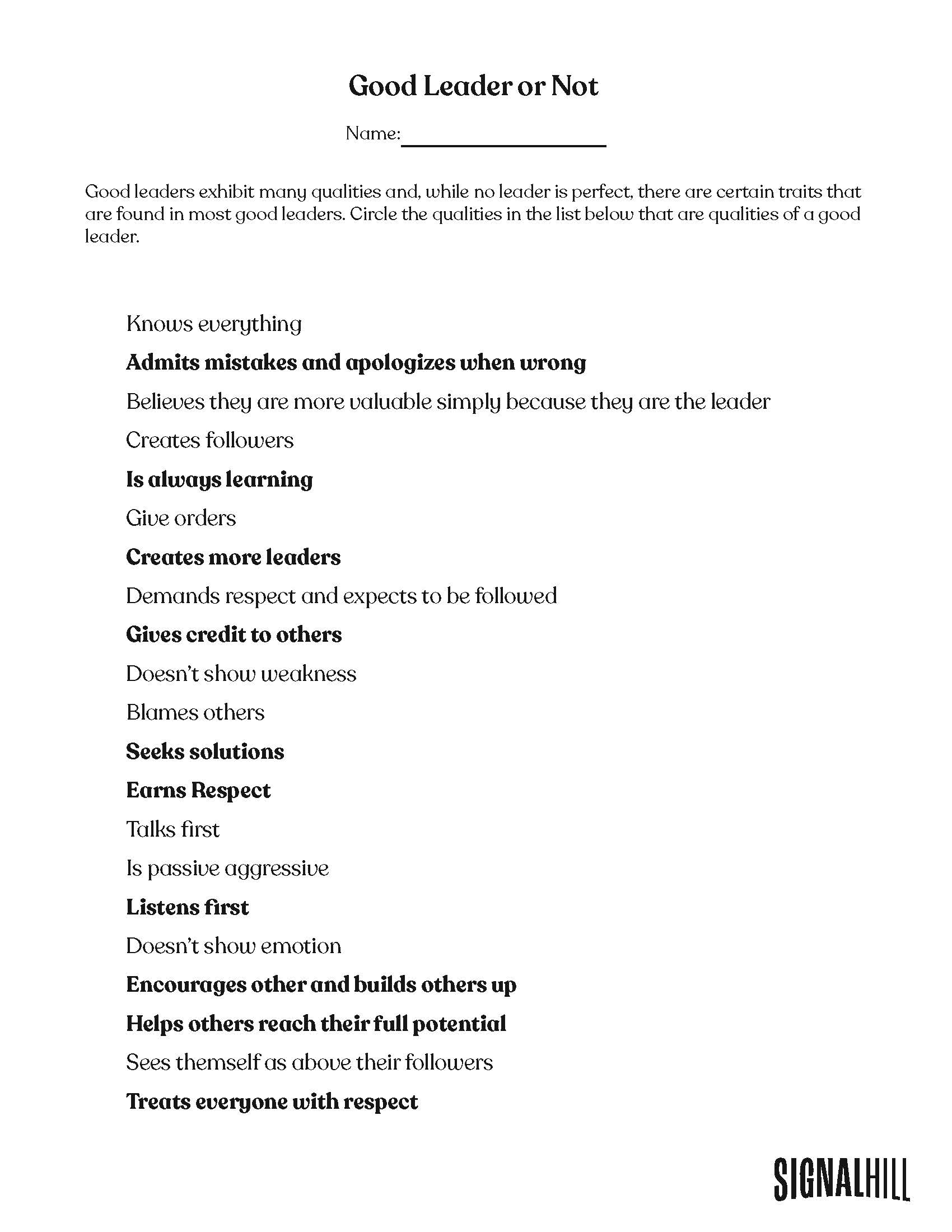 - Recognize that good leaders have qualities that make everyone else around them better.
