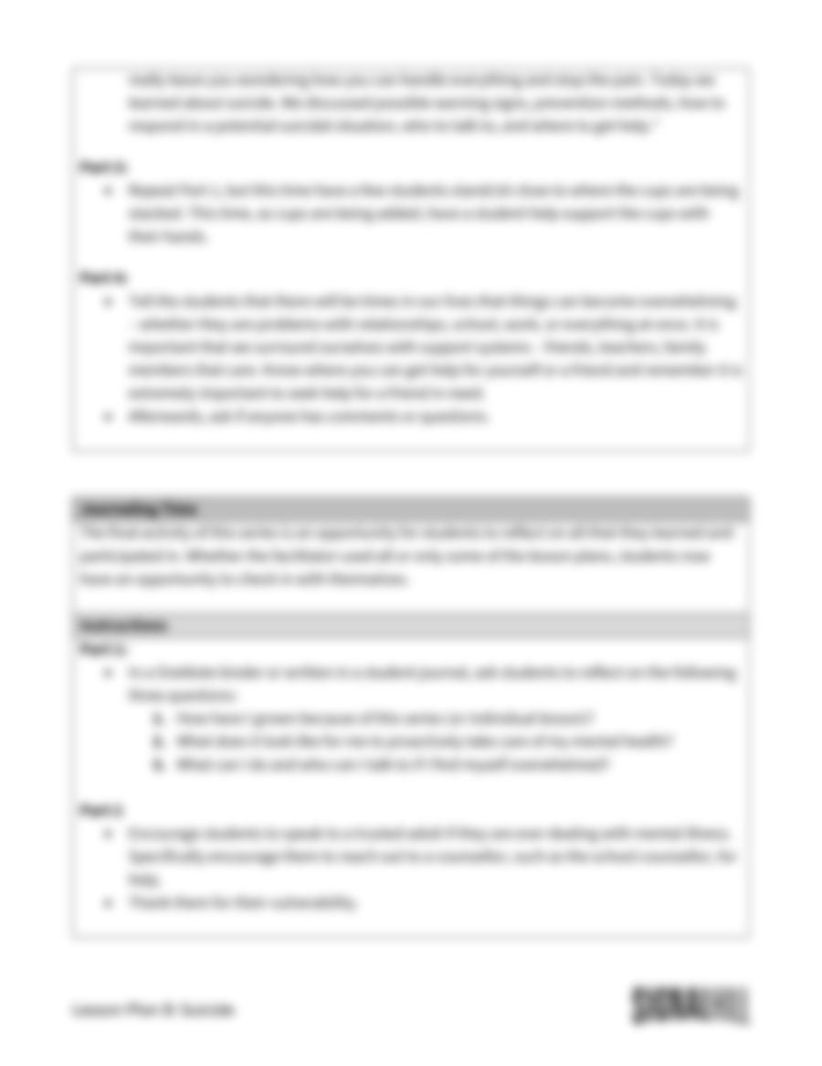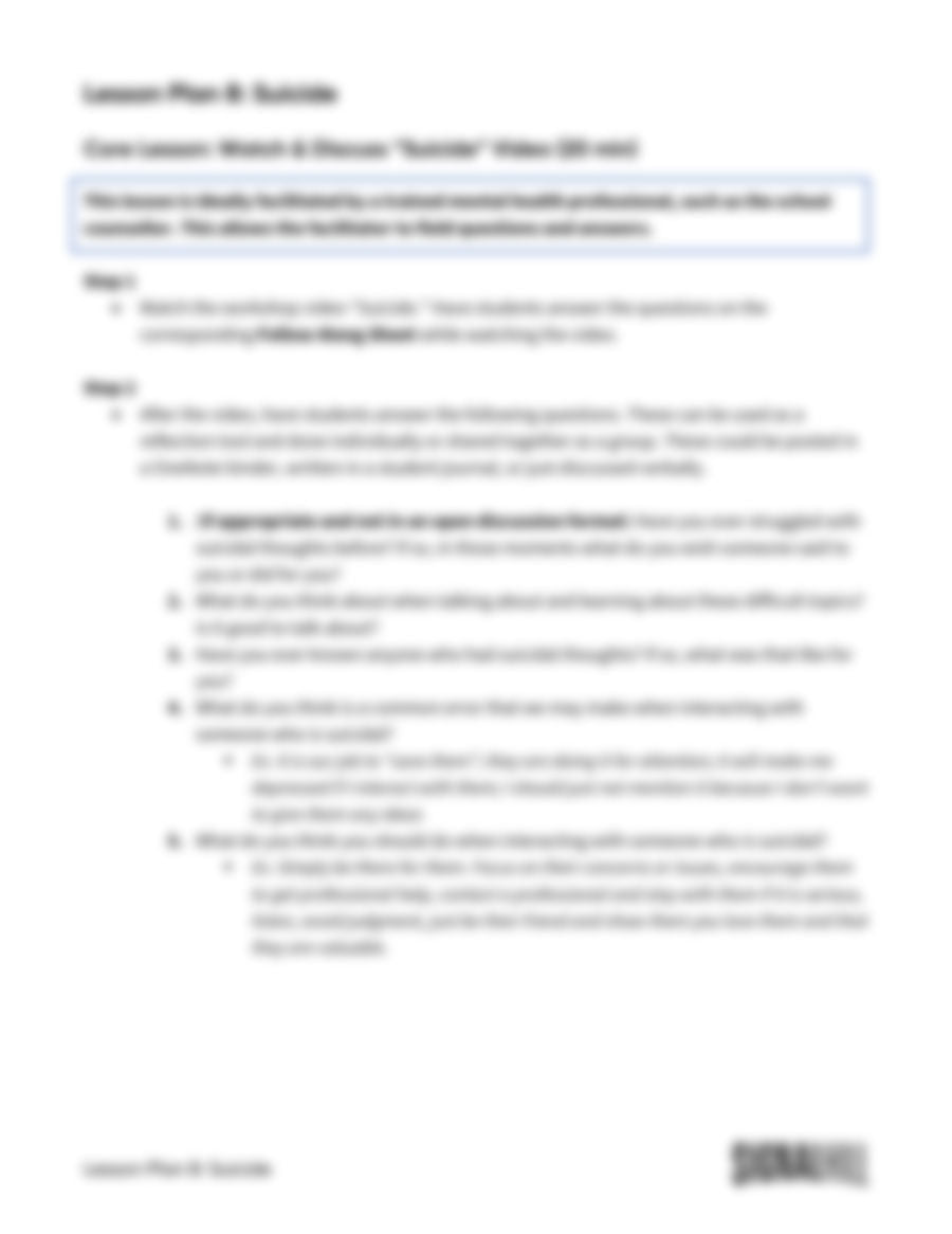 Suicide/suicidal ideation is a heavy topic, but it’s so important to discuss and raise awareness about. This lesson goes through and describes warning signs to look for when someone may be having thoughts of suicide and looks at how to talk to someone who is suicidal.