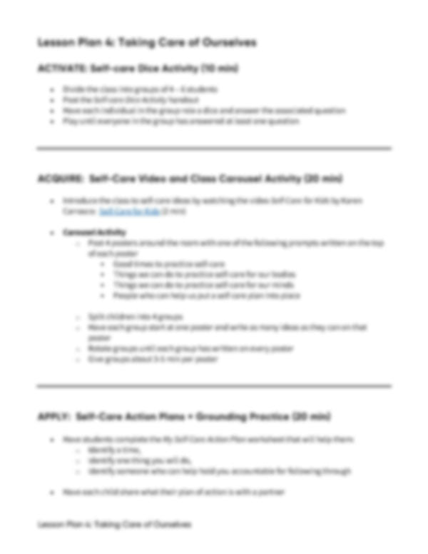 Lesson Plan 4: Taking Care of Ourselves
