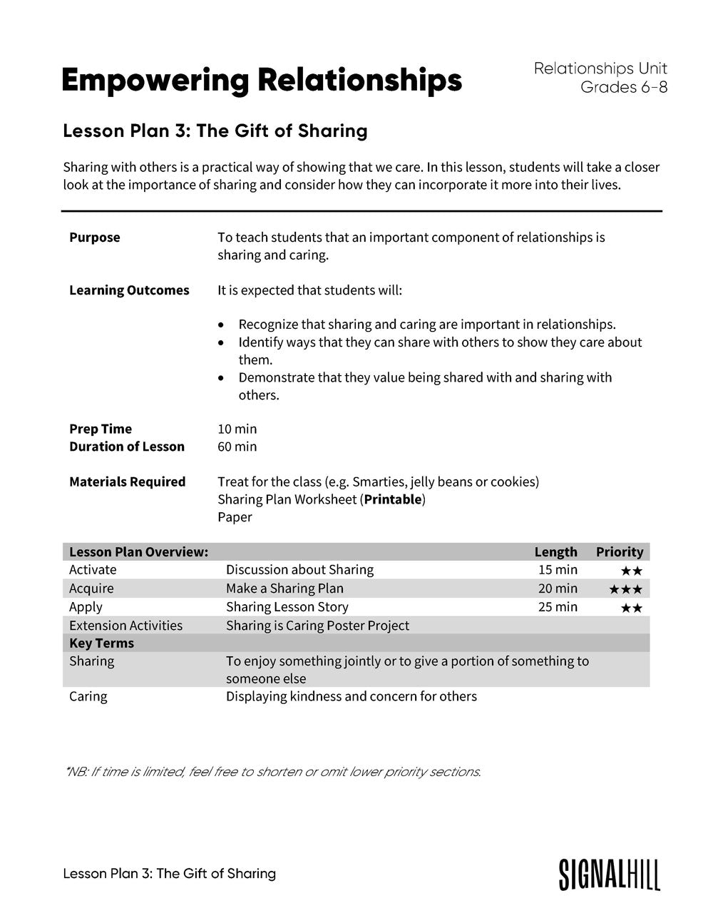 Sharing with others is a practical way of showing that we care. In this lesson, students will take a closer look at the importance of sharing and consider how they can incorporate it more into their lives.