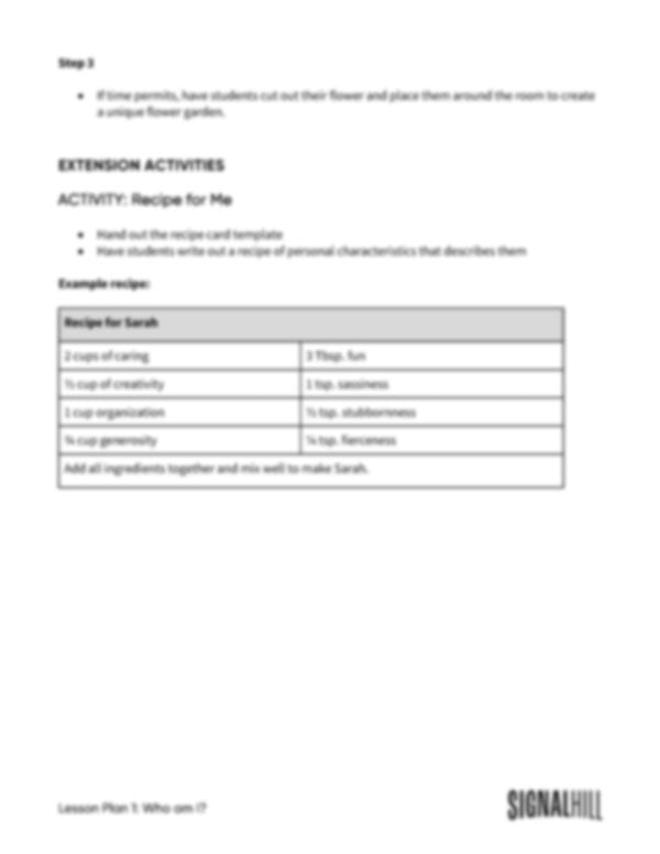 Discovering who we are is an important part of growing up. In this lesson each student will get to explore their personal identity by creatively identifying some of the key characteristics that make up who they are.